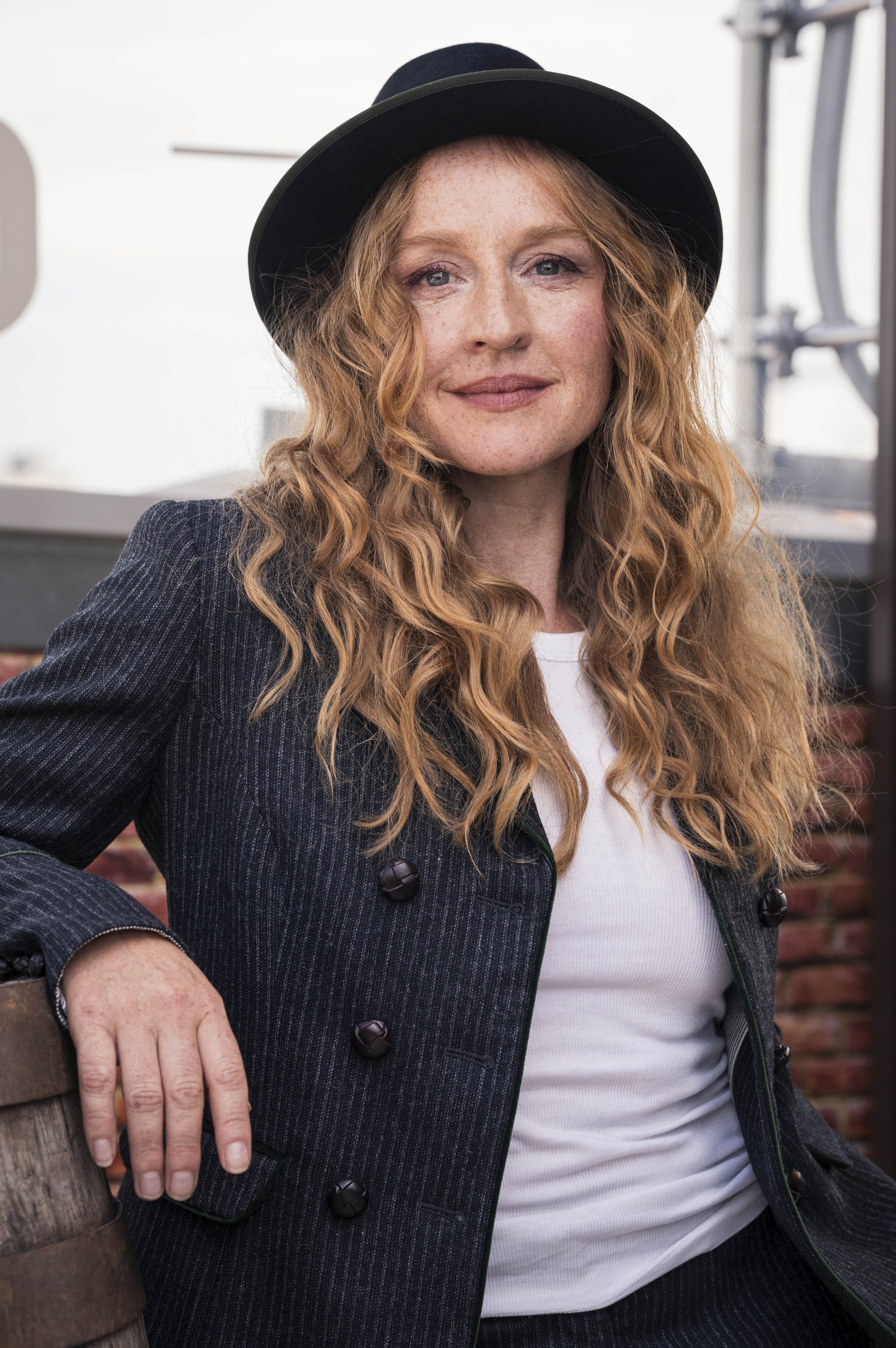 Frau posiert in schwarzem Outfit